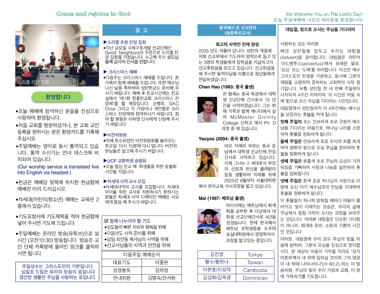 THE Good Korean Church of C&MA 3800 Lake Underhill Rd. Orlando.FL32803 / Tel:
