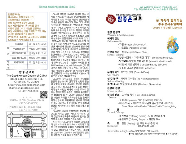 2025-11-23 참좋은 교회 주보 페이지 정보 작성자 참좋은교회 댓글 0건 조회 189회 작성일 25-11-23 18:11 목록 본문 2025-11-23 참좋은 교회 주보입니다. 이전글2025-11-30 참좋은 교회 주보 25.11.30 다음글2025-11-16 참좋은 교회 주보 25.11.16 댓글 0 댓글목록 등록된 댓글이 없습니다. 목록