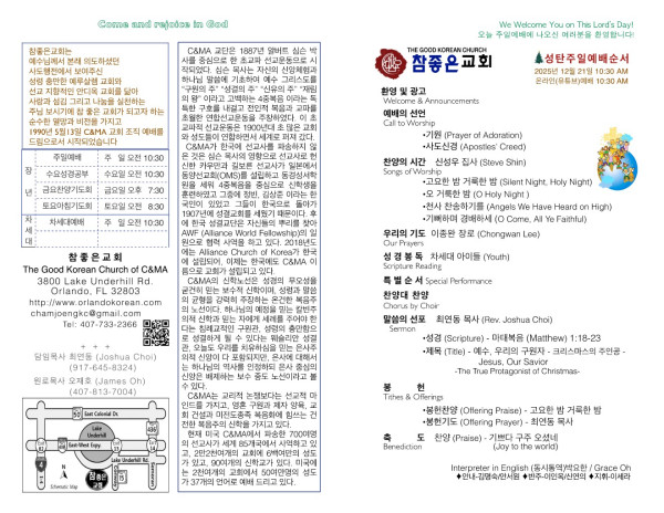 2025-12-21 참좋은 교회 주보 페이지 정보 작성자 참좋은교회 댓글 0건 조회 15회 작성일 25-12-21 18:23 목록 본문 2025-12-21 참좋은 교회 주보입니다. 다음글2025-12-14 참좋은 교회 주보 25.12.14 댓글 0 댓글목록 등록된 댓글이 없습니다. 목록
