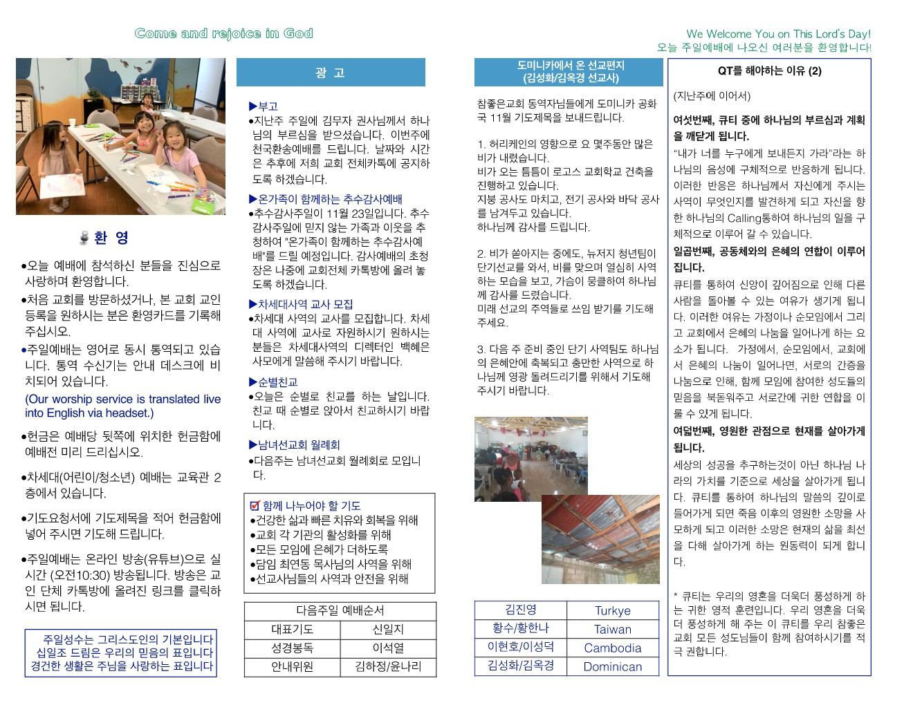 예배순서 및 광고